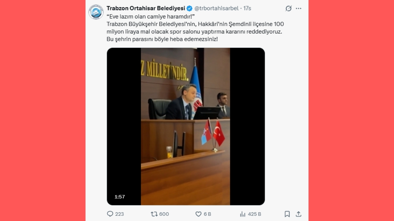 Şaredariya Ortahisarê, ku ji hêla CHPê ve tê rêvebirin, tevlî nîqaşê bû û li ser hesabê xwe yê medyaya civakî daxuyaniyek da. Di daxuyaniyê de: "Tiştê ku ji malê re hewce ye, ji bo mizgeftê heram e. Em biryara Şaredariya Bajarê Mezin a Trabzonê ya avakirina saloneke werzîşê li navçeya Şemzînan a Colemêrgê ya 100 milyon lîreyî red dikin. Hûn nikarin pereyên vî bajarî bi vî rengî xerc bikin."