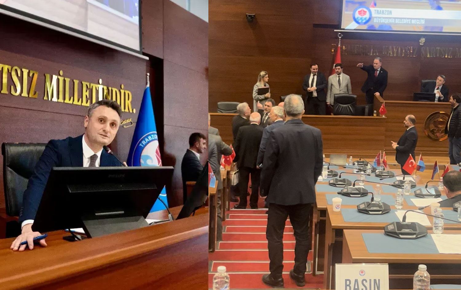 Trabzon Büyükşehir Belediye Meclisi’nde Şemdinli Belediyesi’ne yapılacak 100 milyon TL’lik yatırım kararı tartışmalara neden oldu. Karar sonrası mecliste tansiyon yükselirken, yaşanan gerginlik toplantı çıkışında da devam etti. pic.twitter.com/ueZjHVTTME